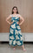 Teal tropical print midi dress,featuring a flattering A-line Silouette and delicate spaghetti straps. the ruched bodice adds a touch of elegence , while the bold leaf print exudes a breezy, vacation-ready vibe. Perfect for brunches , casual outings, or beach gateways, this dress combines comfort with cgic sophistication.