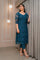 This teal blue kurta set designed in exquisite floral lace fabric for a graceful and modern look. The kurta features a flattering sweetheart neckline, sheer 3/4 sleeves, and a scolloped hemline. paired with matching lace trimmed straight pants, this outfit is perfect pick for festive occassions, parties or evening gatherings.