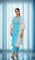 A perfect blend of grace and comfort, this sky blue and white A shape kurta set features intricate cutwork lace embroidery on a premium cotton base. the kurta has a stylish panel design with a scalloped hemline and paired with matching solid blue pants. ideal for office wear, festive events or summer outings.